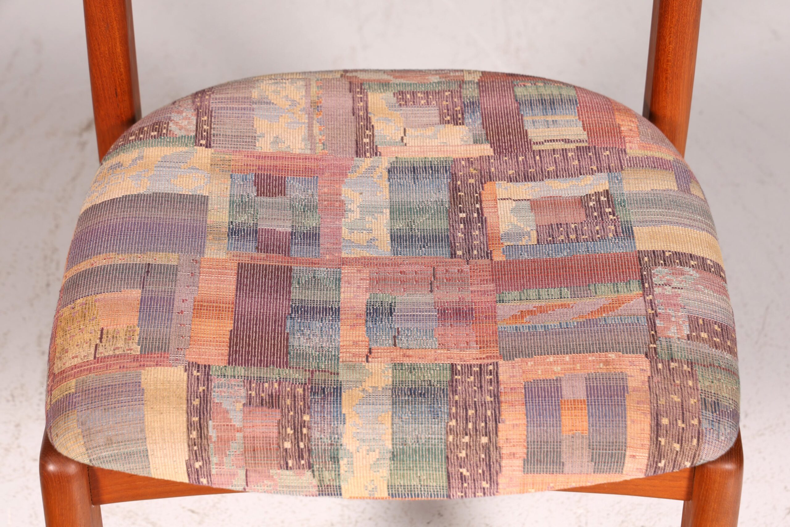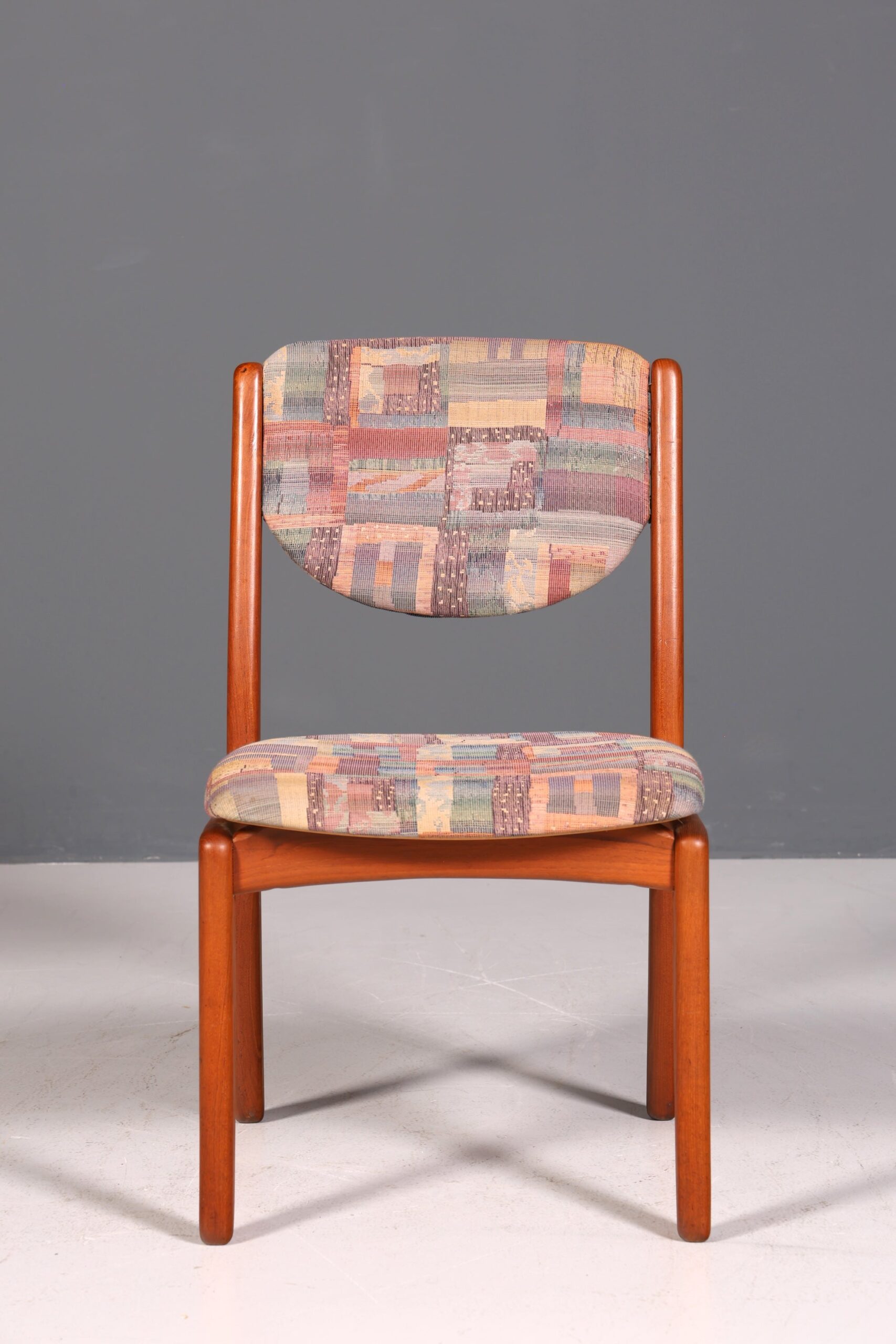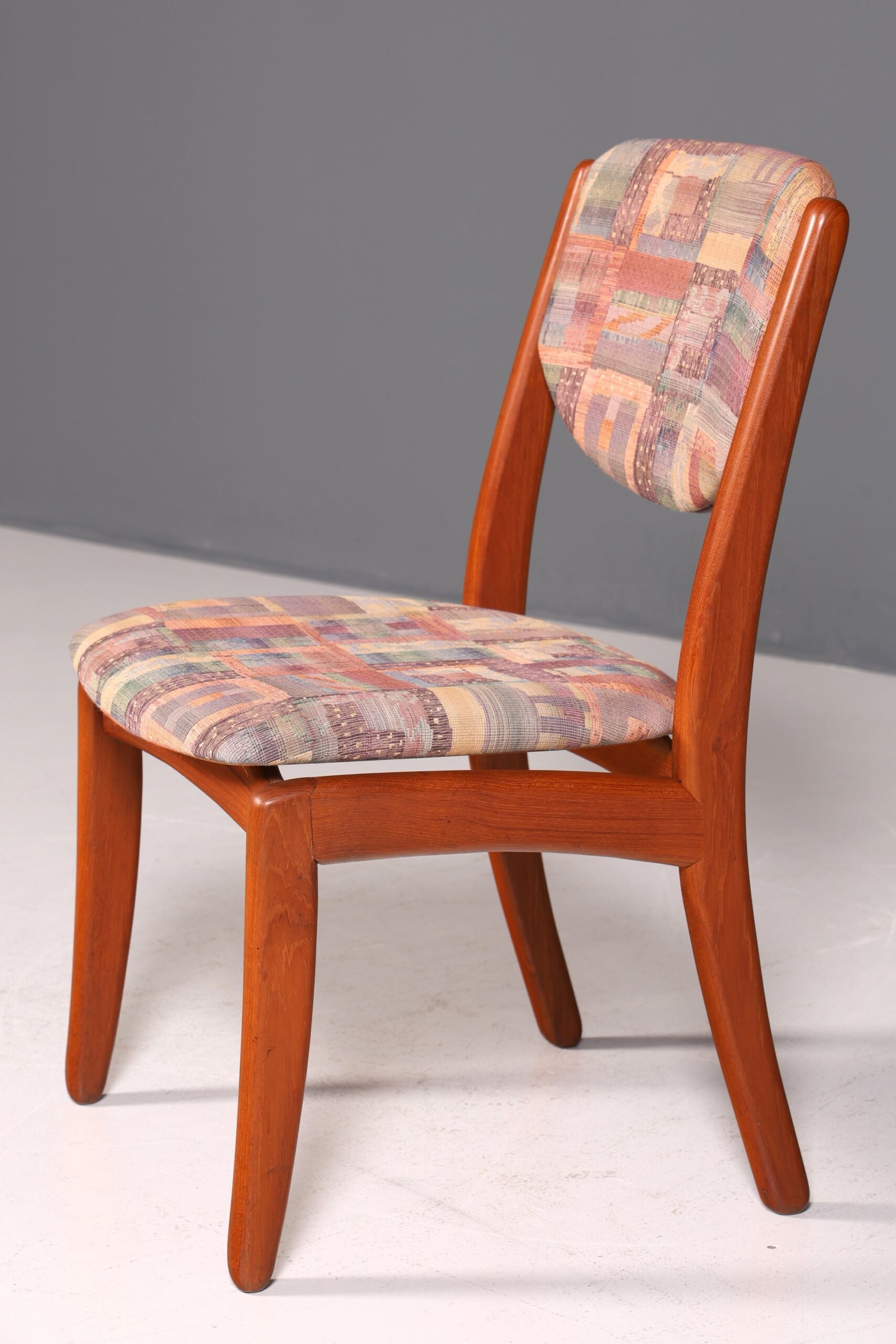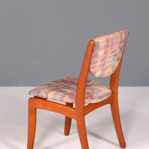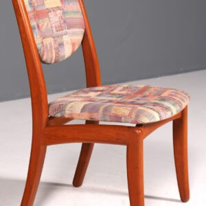 Dieser authentische Mid-Century-Stuhl verbindet zeitlose skandinavische Eleganz mit praktischer Funktionalität. Gefertigt aus hochwertigem Teakholz, besticht das Möbelstück durch seine schlichte, charakteristische Formgebung – ein Klassiker des Danish Design. Der ergonomisch geformte Sitz bietet angenehmen Komfort für lange Mahlzeiten oder konzentriertes Arbeiten am Schreibtisch. Die warme Holzmaserung und die reduzierten Linien machen diesen Stuhl zum vielseitigen Gestaltungselement für Esszimmer, Küche oder Arbeitszimmer. Ein Stück Design-Geschichte, das Qualität und Stil in sich vereint – ideal für Liebhaber authentischer Vintage-Möbel.