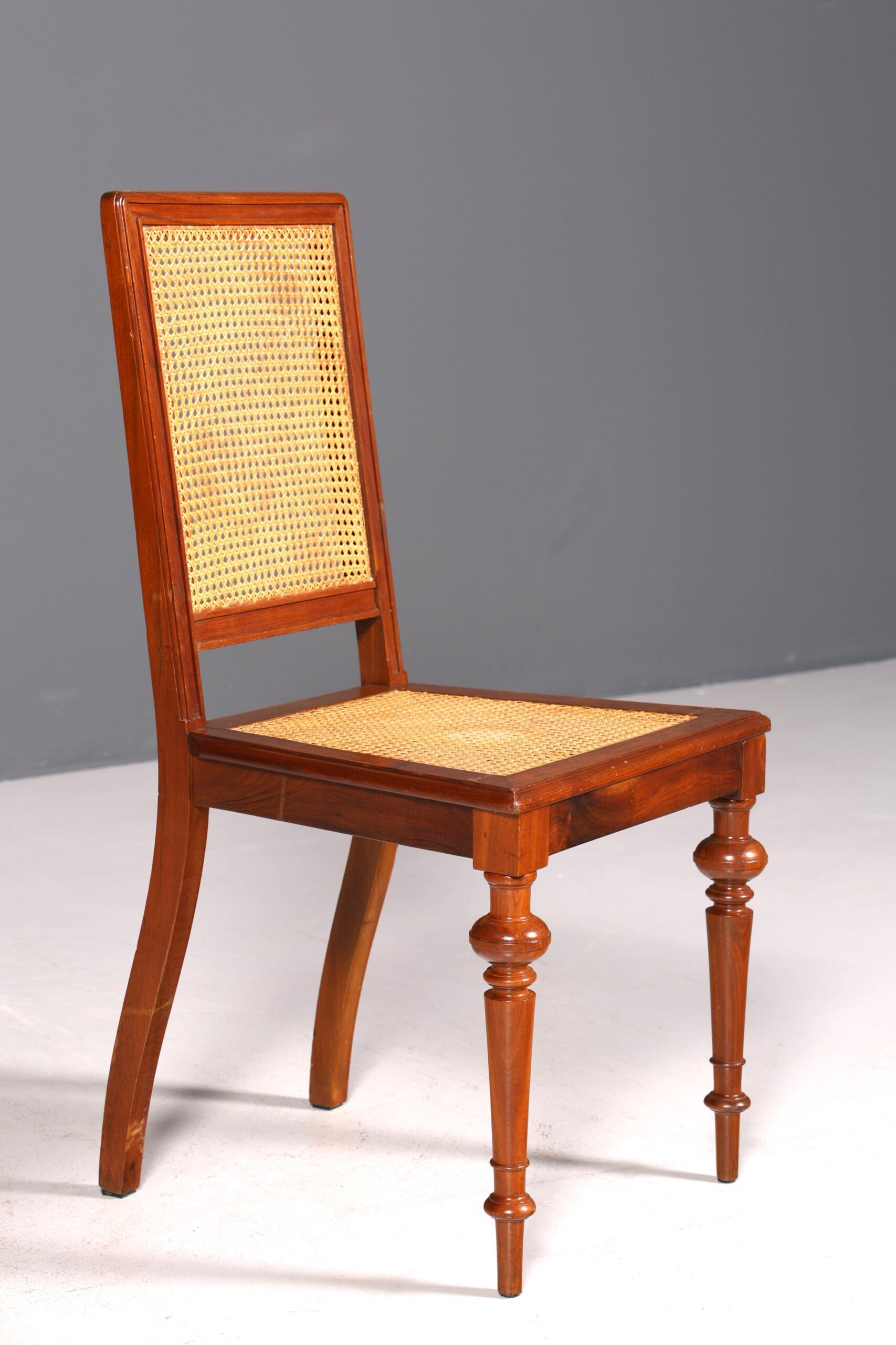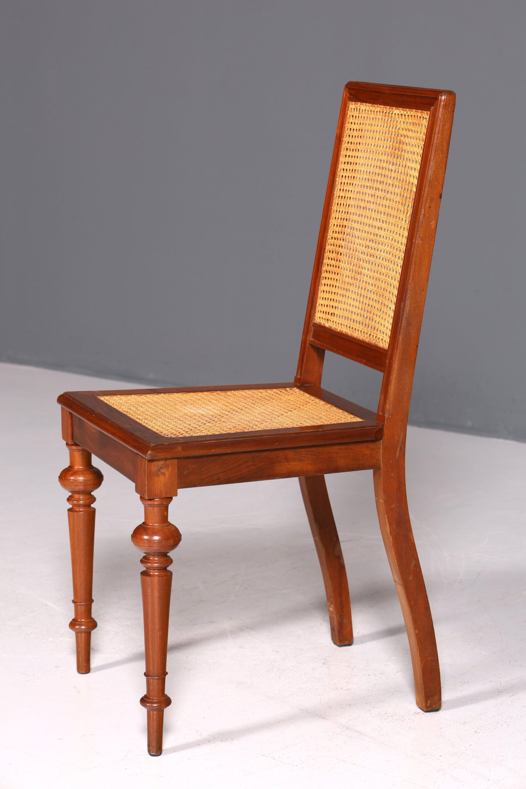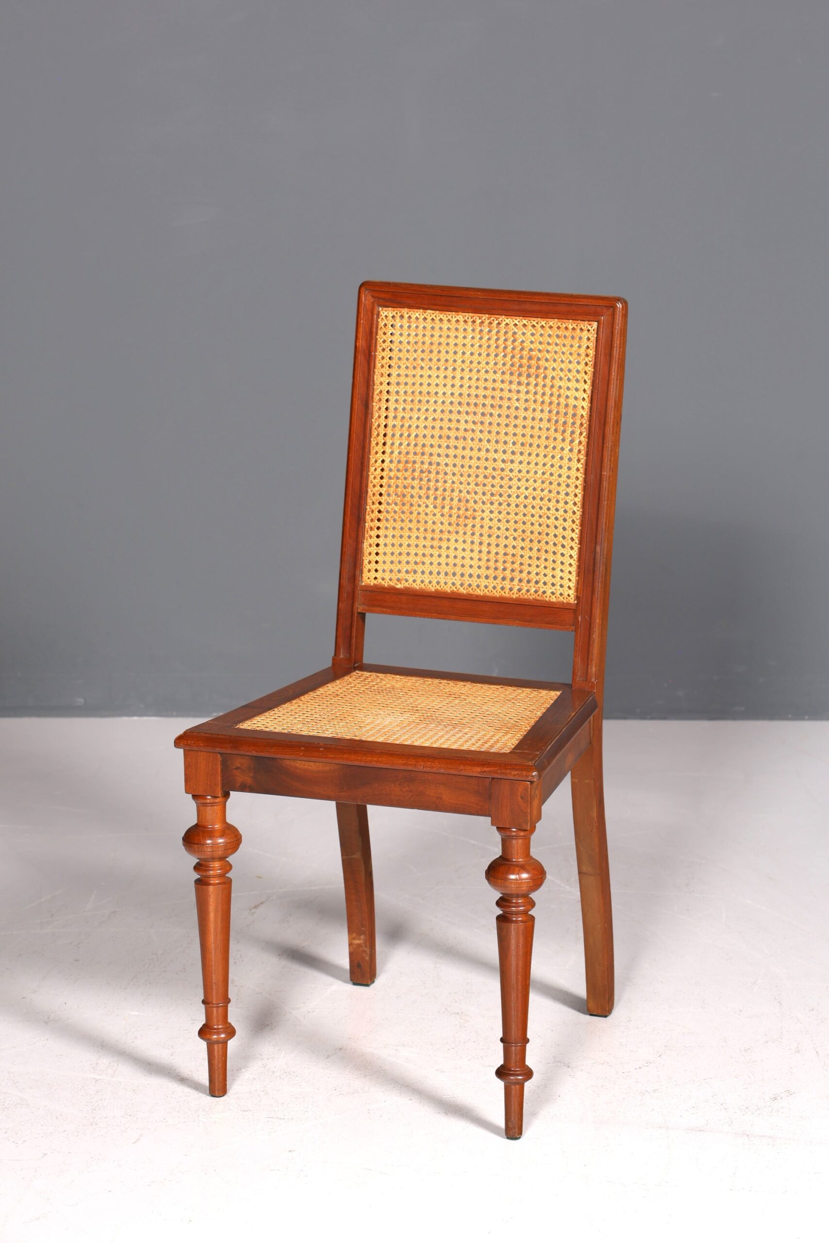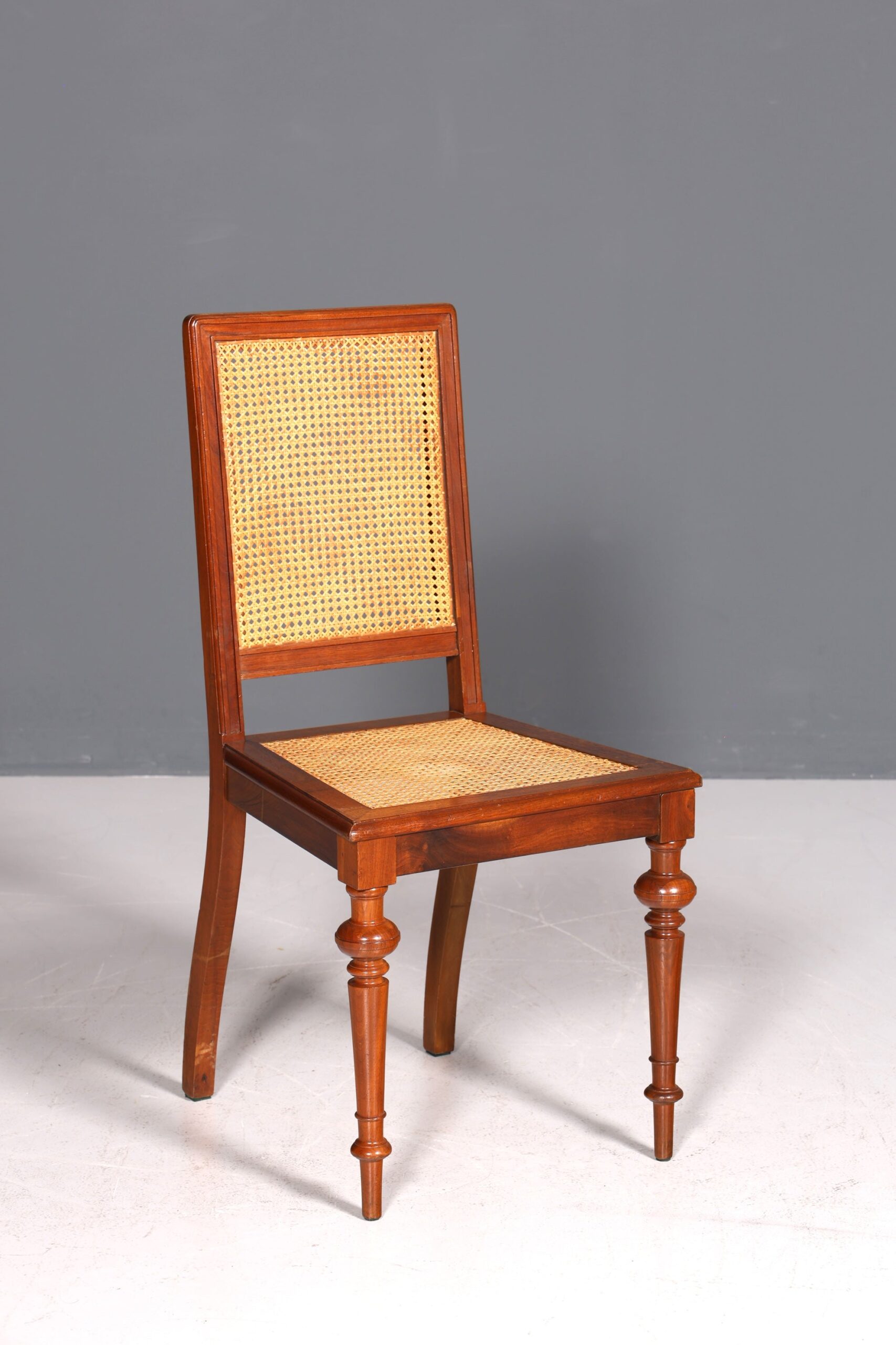 Zum Verkauf steht ein stilvoller Gründerzeit Stuhl mit Korbgeflecht