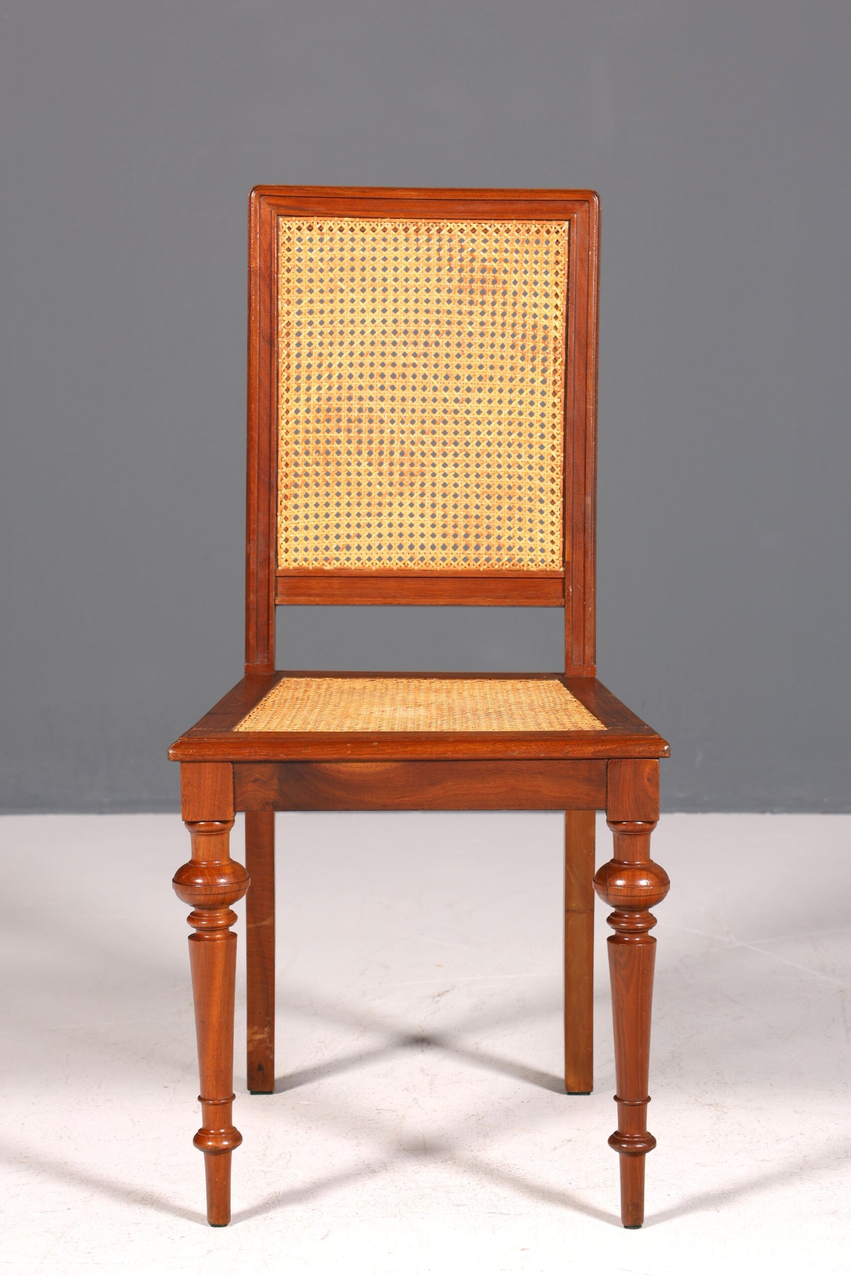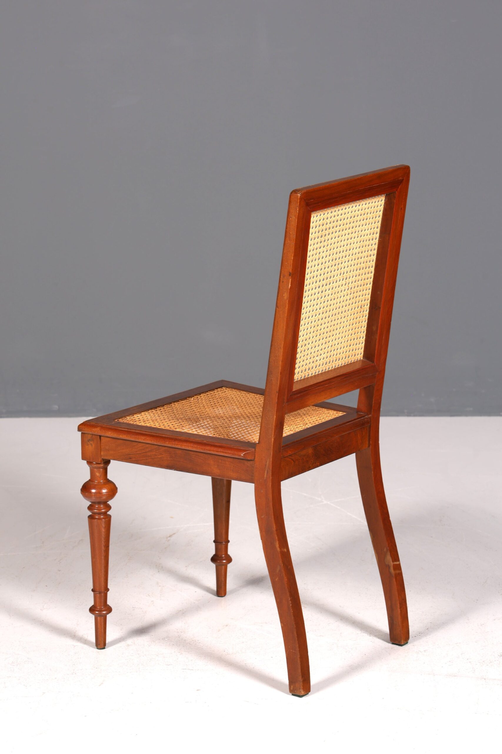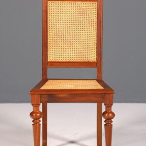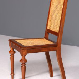 Dieser traumhafte Gründerzeit Stuhl vereint antiken Charme mit komfortablem Korbgeflecht und ist ideal für Schreibtisch, Sekretär oder Küche. Seine zeitlose Eleganz bringt stilvolle Atmosphäre in jeden Raum, während das robuste Design langanhaltenden Sitzkomfort garantiert. Perfekt für alle, die geschmackvolles Ambiente und Qualität schätzen.