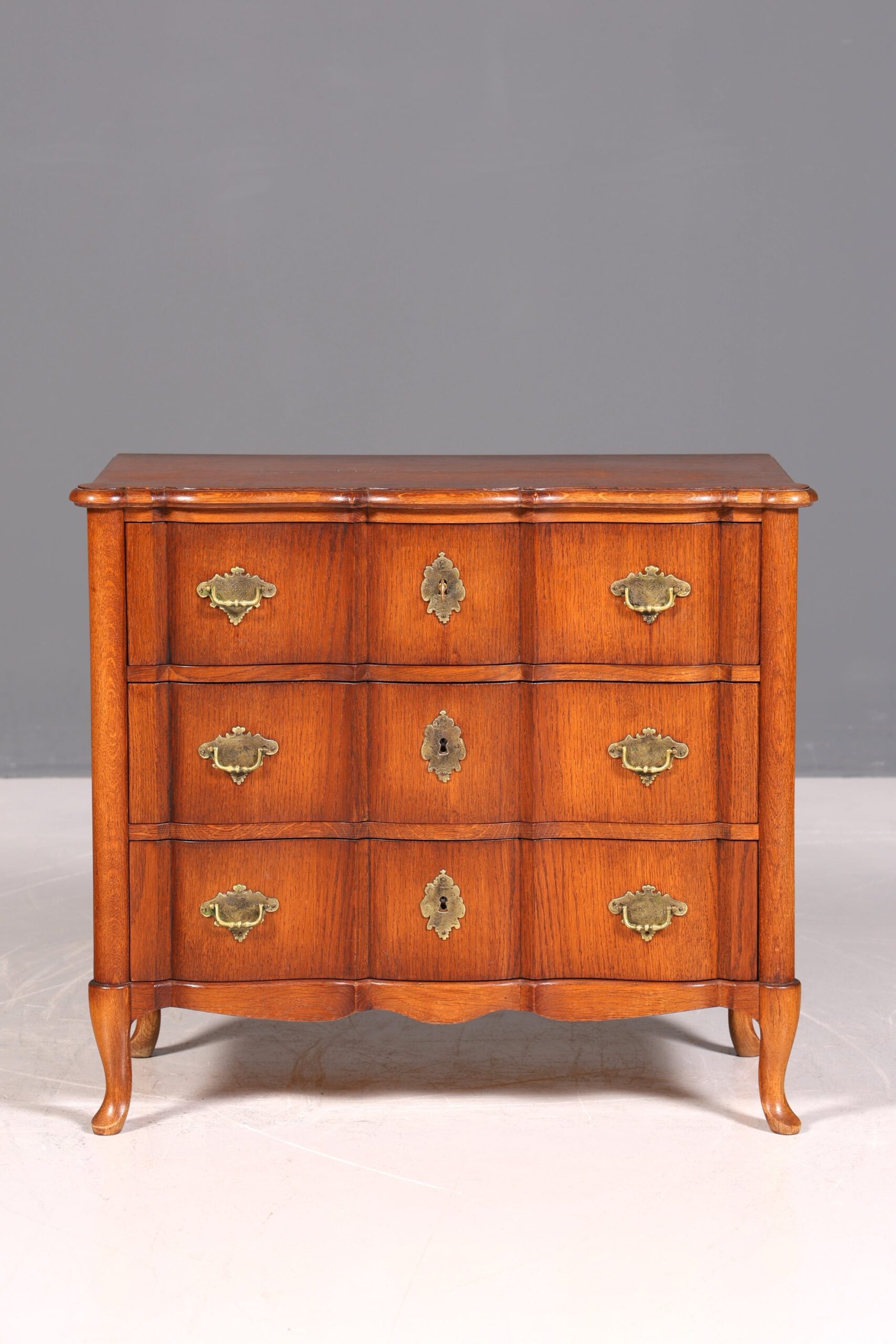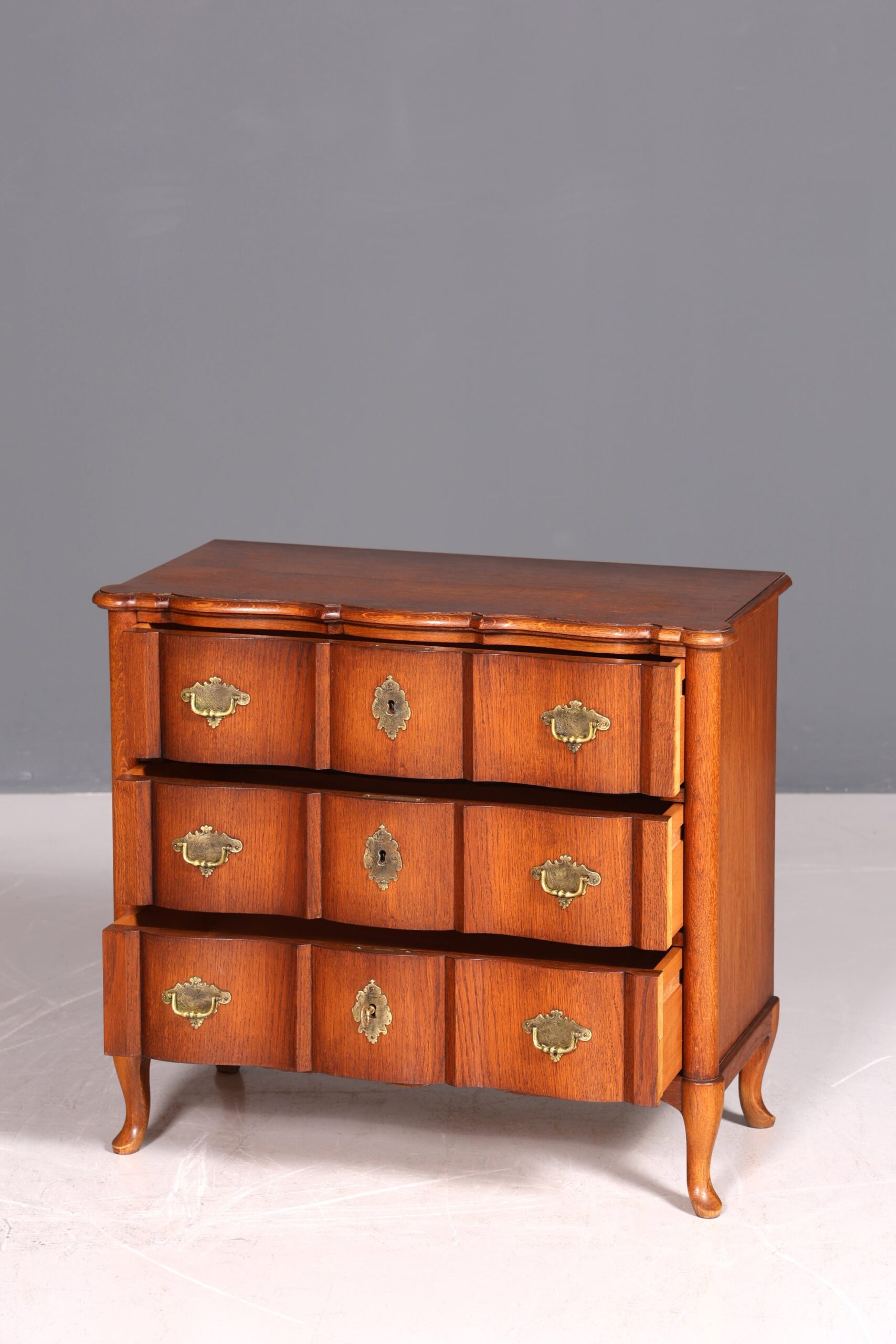 Traumhafte kleine geschwungene Kommode im Barock Stil Englisch Schubladenkommode — Hochwertiges Design und erstklassige Handwerkskunst; ein ideales Möbelstück, um Ihrem Zuhause Stil und Eleganz zu verleihen.