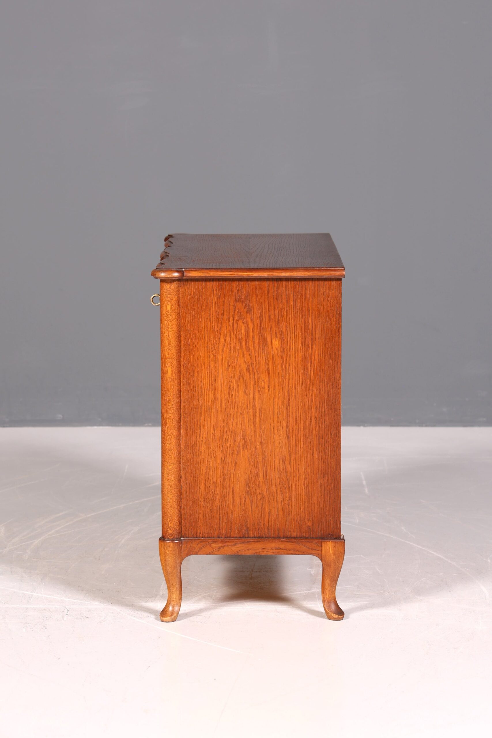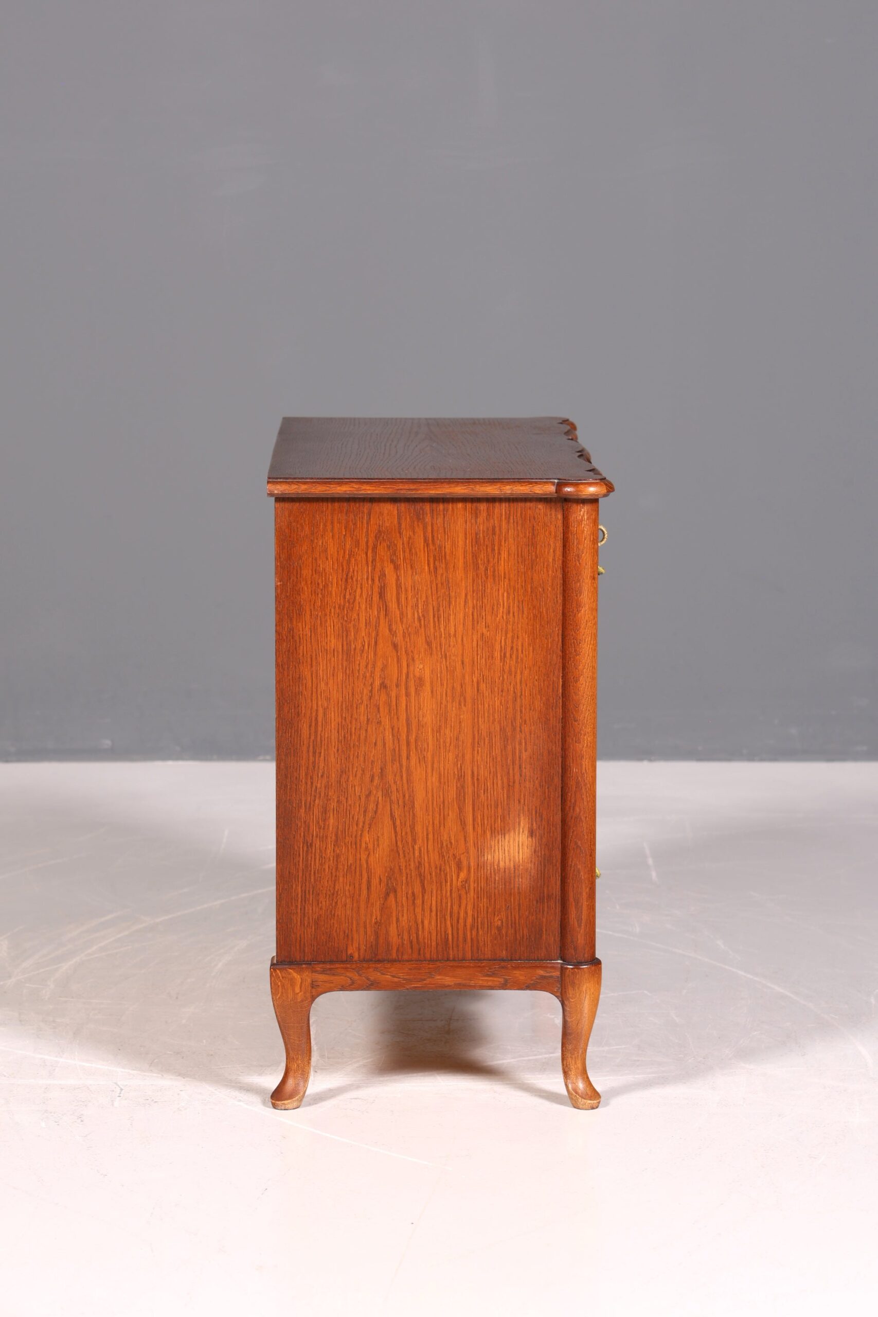 Erleben Sie zeitlose Eleganz mit dieser wunderschönen, geschwungenen Kommode im Barockstil. Das englisch inspirierte Sideboard überzeugt durch seine kunstvollen Formen und edlen Details. Mit praktischen Schubladen bietet es nicht nur reichlich Stauraum, sondern verleiht jedem Raum luxuriösen Charme und Stil. Perfekt, um klassische Schönheit mit funktionaler Eleganz zu verbinden.