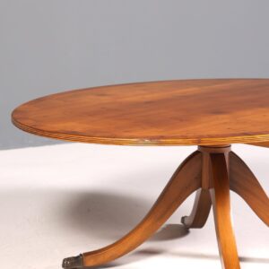 Dieser exquisite englische Beistelltisch verkörpert die zeitlose Eleganz der Regency-Ära. Gefertigt aus kostbarem Eibenholz, besticht das Stück durch seine feine Handwerkskunst und die charakteristische Formensprache des klassischen englischen Designs. Die großzügige Ablagefläche bietet praktischen Stauraum für Ihre liebsten Objekte, während die subtile Maserung des Holzes jeden Raum mit Wärme und Raffinesse erfüllt. Ein Meisterwerk für Sammler und Liebhaber authentischer Antiquitäten, das Ihrem Interieur unverwechselbare Persönlichkeit verleiht.