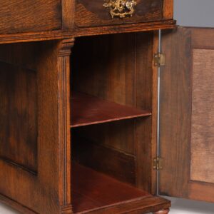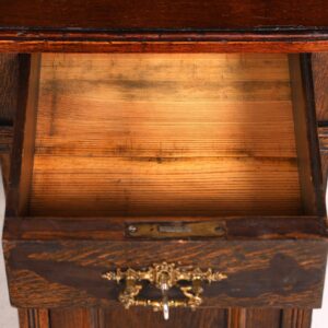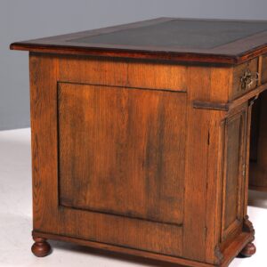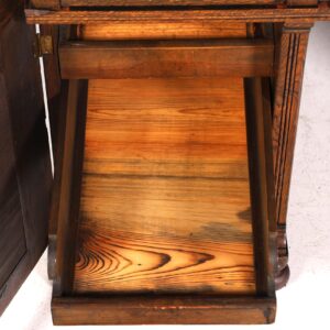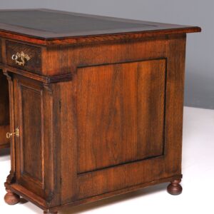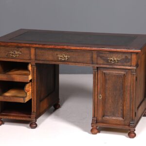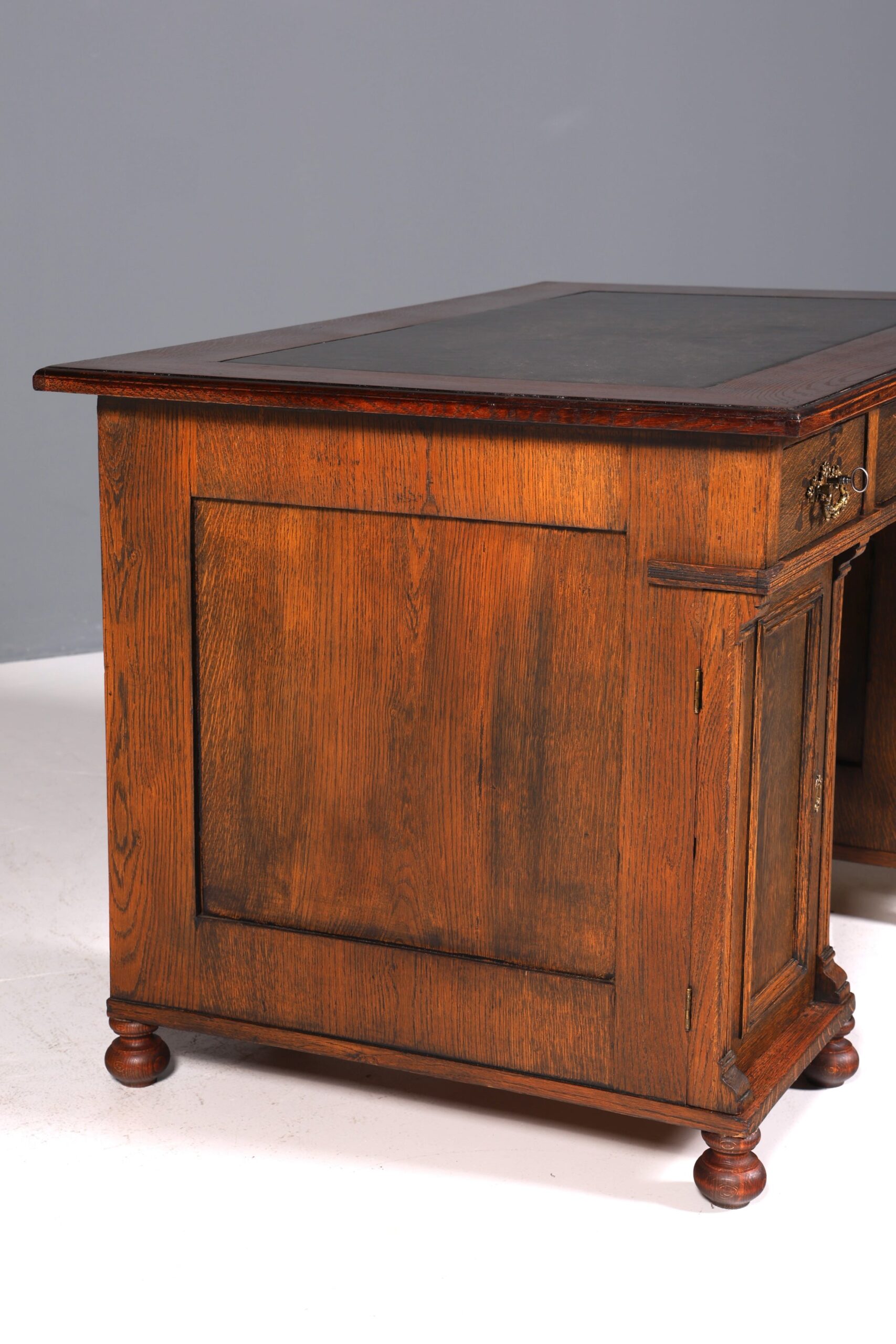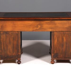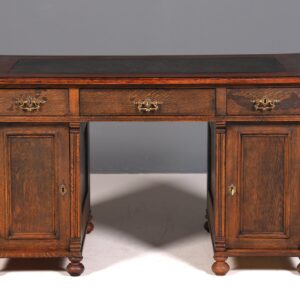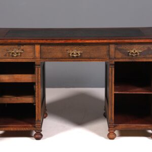 Dieser traumhafte Jugendstil-Schreibtisch aus der Gründerzeit vereint kunstvolle Handwerkskunst mit robustem Holz. Er bietet nicht nur großzügigen Platz für produktives Arbeiten, sondern verleiht jedem Büro mit seinem zeitlosen Design und der warmen Holzmaserung eine besondere Atmosphäre. Ein stilvolles Möbelstück, das Funktionalität und Eleganz perfekt verbindet.