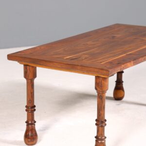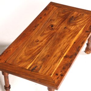 Dieser wunderschöne Couchtisch aus Sheesham-Holz im Kolonialstil vereint zeitlose Eleganz mit robuster Handwerkskunst. Sein warmes Holzfinish bringt natürliche Schönheit in Ihr Wohnzimmer, während die praktische Ablagefläche zusätzlichen Stauraum für Bücher oder Dekoration bietet. Ein stilvolles Möbelstück, das Gemütlichkeit und Funktionalität perfekt verbindet.